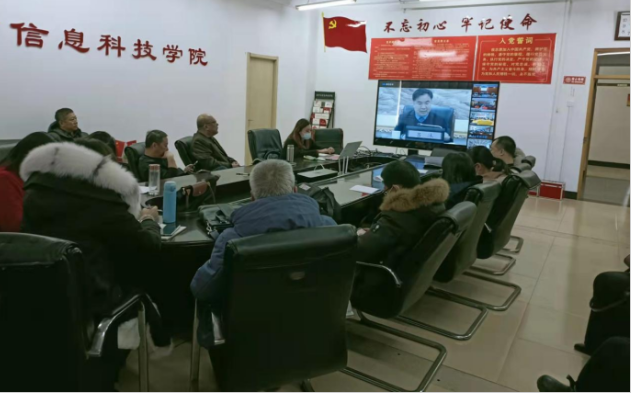 2022年1月18日,数学与信息科技学院组织全体领导班子成员、各教学部主任、毕业班班主任在会议室集中收看了2022届全国普通高校毕业生就业工作第一次调度视频会议,认真听取了全国优秀院校的就业工作经验,深入学习贯彻会议精神。