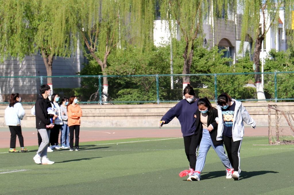 2022年4月30日下午,财经学院闭环内4名教师和50余名同学在学校运动场开展趣味活动,运动战疫情,欢乐迎五一。