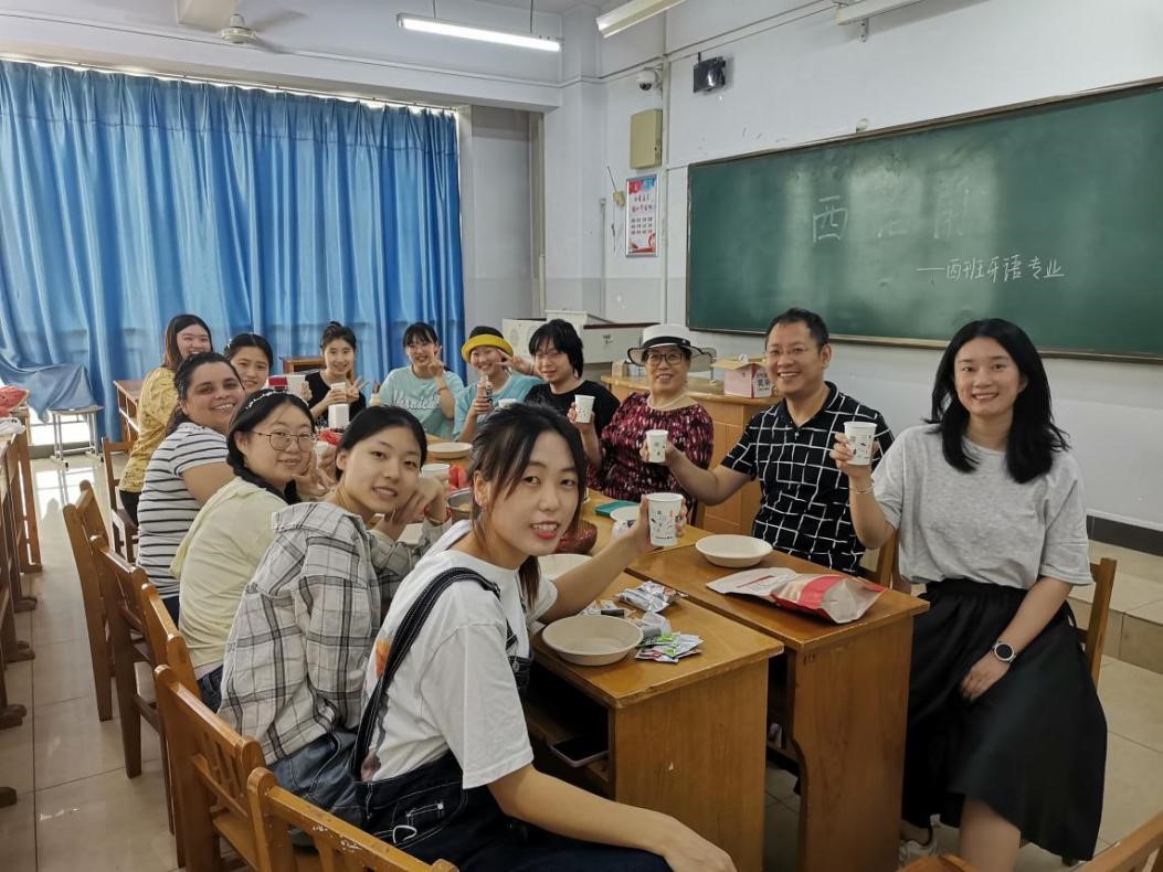 学院党委负责同志向同学们介绍了外语学习的方法、心得与外语专业发展前景。外教老师精心准备了自己烘焙的蛋糕和拉美特色的papas rellenas (鸡肉馅炸土豆),受到了学生的一致喜爱。活动中,与会师生就本学期的心理状况和学习生活中遇到的问题和困惑展开交流。恰逢端午节,同学们用西班牙语向外教介绍了中国的传统节日,加深了外教对中国文化的了解和认同,促进了不同国家之间的文化理解。