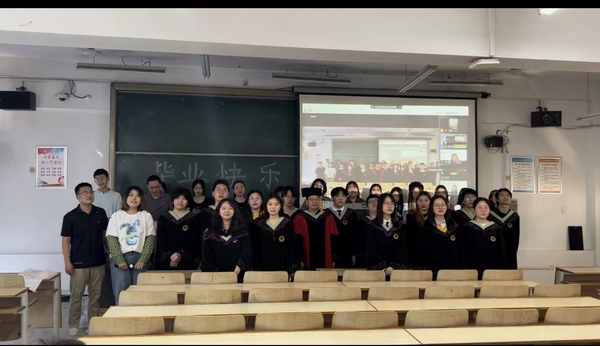 上午9点,典礼在毕业生代表鲁一帆和教师代表李国伟的歌声中正式拉开序幕。典礼上,线上线下师生一同观看了学院教师为毕业生录制的祝福视频及学院同学制作的青春毕业季微电影。