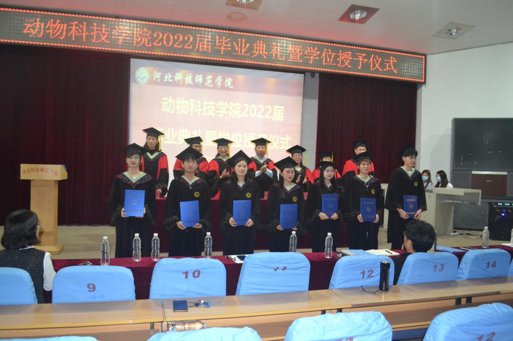 2022年6月9日上午,动物科技学院2022届毕业典礼暨学位授予仪式在昌黎校区学术报告厅举行。学院党政领导、毕业班班主任、教师代表和闭环内全体学生70余人参加了仪式。仪式全程在“哔哩哔哩”进行了线上直播,企业家班主任、学生家长和全院师生近3100人观看了现场直播。