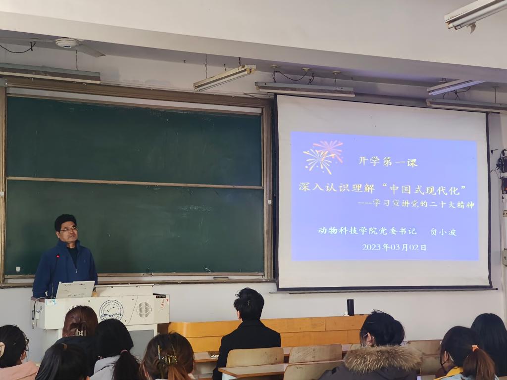 为不断深化学习宣传贯彻党的二十大精神,引领青年学生深刻认识理解和掌握党的创新理论,坚持用党的创新理论武装思想,认清使命担当,强化政治意识,提高政治站位,2023年3月2日,动物科技学院党委面向青年学生专题宣讲党的二十大创新理论。