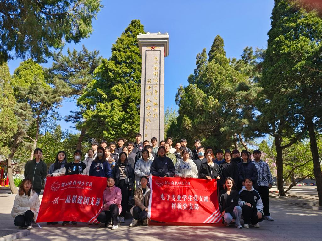 2023年4月8日,机电工程学院电子专业学生党支部、电子专业学生团支部、院团委青年学习社部分学生代表前往昌黎县烈士陵园开展“铭记历史,致敬英烈”主题活动。