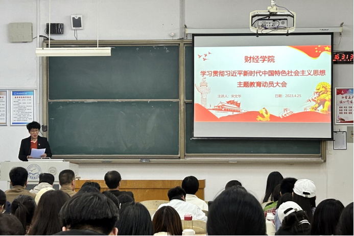 2023年4月25日,财经学院组织召开学习贯彻习近平新时代中国特色社会主义思想主题教育动员部署会。学院领导班子成员、全体师生党员共计100余人参加了会议。