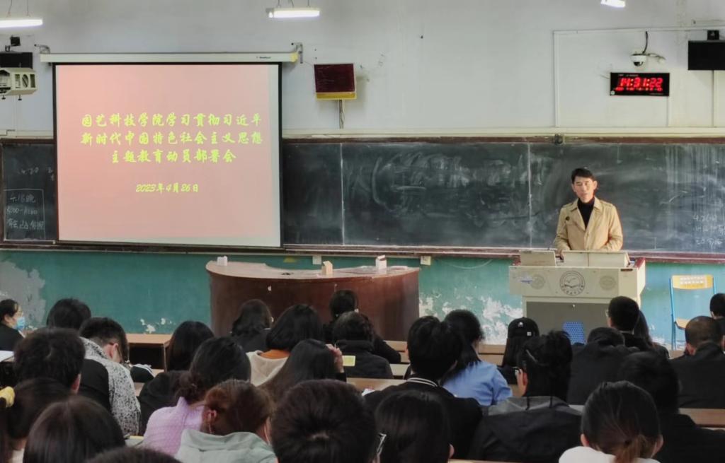 4月26日下午,园艺科技学院召开了学习贯彻习近平新时代中国特色社会主义思想主题教育动员会,党委书记于海印主持会议并作动员讲话,学院领导班子成员、全体教职员工、全体学生党员参加了会议。