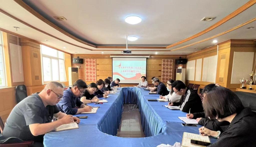 2023年5月25日上午,继续教育学院教工党支部召开学习贯彻习近平新时代中国特色社会主义思想主题教育专题学习会议,集体学习习近平同志在高标准高质量推进雄安新区建设座谈会上的重要讲话和在深入推进京津冀协同发展座谈会上的重要讲话精神,学习中共河北省委十届四次全会精神。教工党支部书记主持会议,学院全体党员参加了学习会议。
