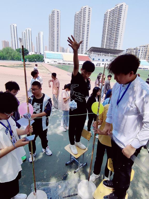 在投掷环节中,每个参赛作品的落地都伴随着大家的阵阵惊呼,优秀的结构从空中整体平稳地落下且鸡蛋完好无损,赢得在场人员的阵阵掌声。
