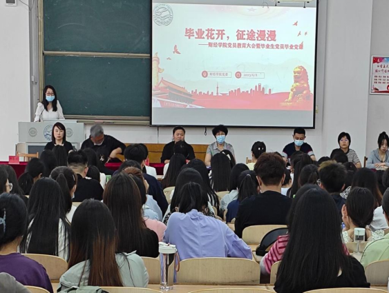 为进一步加强党性教育、增强党员服务意识、强化组织纪律观念,引导广大党员充分发挥党员的先锋模范作用。6月8日下午,财经学院党委组织召开了“毕业花开,征途漫漫——财经学院党员教育大会暨毕业生毕业党课”活动。学院党委负责同志、各学生党支部全体师生党员共计一百余人参加了本次会议。