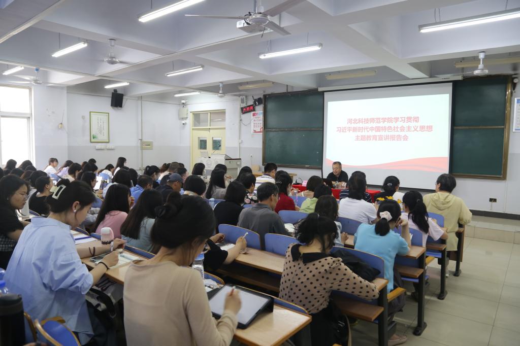 2023年6月8日,校思想政治理论教育宣讲团成员、校党委宣传部部长赵宗宝同志为教育学院开展学习贯彻习近平新时代中国特色社会主义思想主题教育集中宣讲。教育学院全体教职工、学生党员和积极分子共134人听取报告。