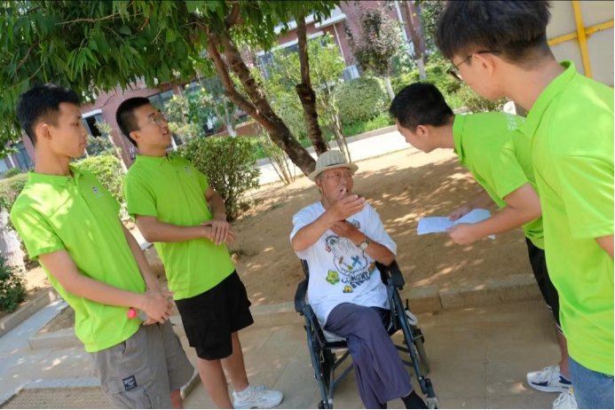 团队成员在听取老党员讲解青年时期参加解放战争的经历