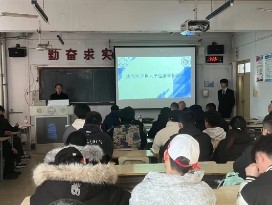 招聘会上,北京房山红酒中心主任以及四家公司负责人向同学们介绍了公司的发展情况、行业前景以及岗位需求。宣讲结束后,公司负责人与同学们进行了深入的沟通交流。35名农机专业学生投递了简历。