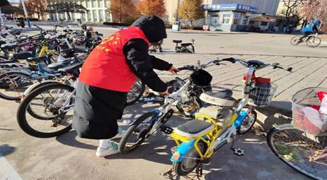 志愿者们冒着严寒,根据停车点的环境合理规划区域,将没有摆放在指定位置和摆放不整齐的单车重新摆放到指定停车区域,有效解决了原来乱停乱放车辆和占用道路的问题。同时,志愿者们在停车处附近值班站岗,提醒前来停放车辆的同学要规范停车,对不文明停放车辆的行为进行劝阻与指导,提醒和敦促广大同学要养成自觉有秩序停放摆放单车的良好生活习惯和维护公共环境秩序的习惯。