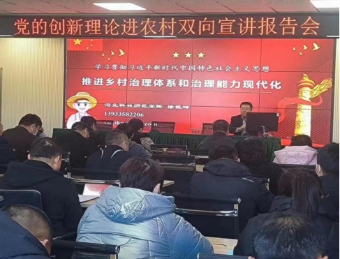 为扎实推进乡村治理体系建设,提升乡村治理水平,12月1日,受海港区杜庄镇邀请,财经学院副院长徐祗坤教授带领农村发展专业研究生到海港区杜庄镇参加了“党的创新理论进农村双向宣讲报告会”。杜庄镇党政领导班子成员、各村(社区)党支部书记参加了本次会议。