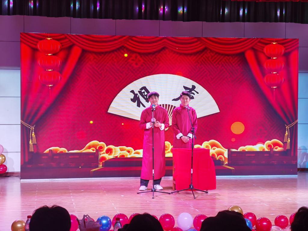 音乐欢快的歌曲串烧让同学们激情澎湃,经典有趣的小品让同学们捧腹大笑,师生们的精彩表演获得阵阵喝彩。节目过程中穿插的抽奖环节更是让现场师生紧张激动,内心澎湃。“天下相亲与相爱,动身千里外心自成一脉;今夜万家灯火时,或许隔窗望梦中佳境在;天下相亲与相爱,动身千里外心自成一脉……”伴着和谐美好的音乐,晚会落下帷幕。