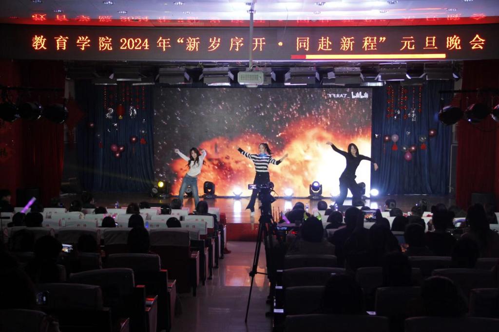 2023年12月28日,教育学院举办“新岁序开·同赴新程”元旦晚会,元旦晚会包括领导致辞,节目表演,抽奖三个环节。