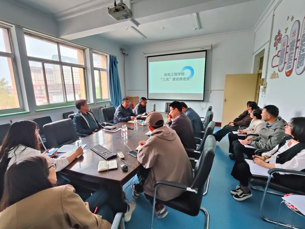 2024年4月29日,机电工程学院召开了“三风”建设推进会。学院领导班子成员、党委委员、教学部主任、专业带头人、支部书记、全体行政管理人员参加了会议。