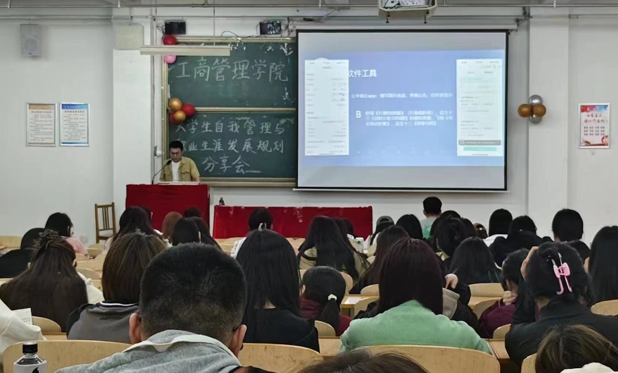 2024年5月24日,工商管理学院举办“榜样的力量”主题大学生自我管理与职业生涯发展分享会,学院240余名青年学子参加了活动。