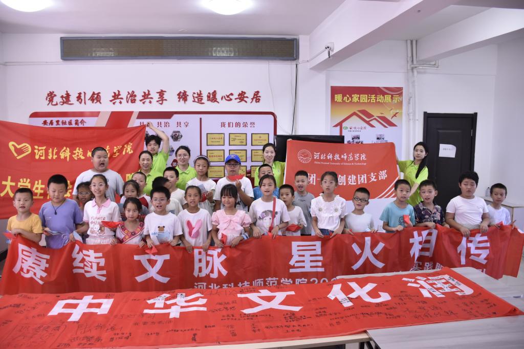 社区活动中,实践团的成员们为居民及中小学生开展了红色文化教育、勤俭节约、艰苦朴素教育、非遗文化、中华诗词文化等传统文化教育,引导社区少年儿童做追“光”的好少年,大学生们向社区少年儿童传播着中华民族上下五千年形成的以爱国主义为核心的伟大的创造精神、奋斗精神、团结精神、梦想精神及崇高的思想品德。在陈台子村,实践团开展“艺术墙绘邂逅美丽乡村”活动,以社会主义核心价值观、中华优秀传统美德作为艺术墙绘的创造素材,运用专业知识绘制特色墙绘图纸,对墙体进行考量,设计特色墙绘。