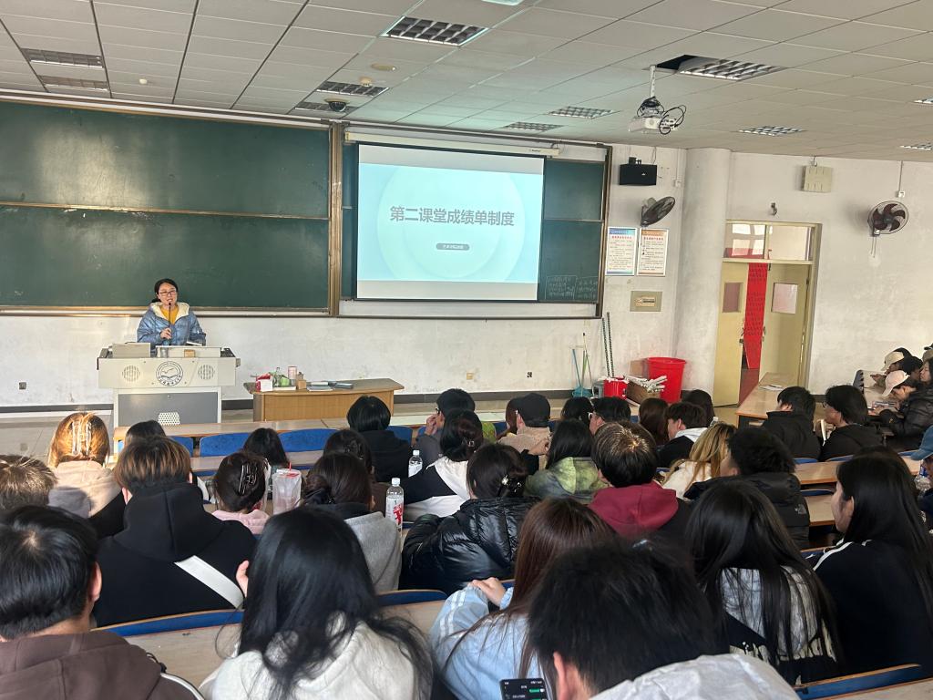 会上,学院团委负责老师向同学们详细介绍了“第二课堂成绩单”制度的意义要求、课程项目体系、记录评价体系、积分标准和学分计量办法等内容,鼓励同学们积极参加第二课堂活动,丰富课余生活的同时提升自身综合能力。“第二课堂成绩单”课程项目体系主要分为7个类别,即思想成长、实践实习、志愿公益、创新创业、文体活动、技能特长、工作履历,整体围绕学校应用型人才培养定位,通过对第二课堂工作内容、评价机制等进行整体设计,形成可记录、可评价、可测量、可呈现的第二课堂工作体系,认证学生在校期间第一课堂以外的活动经历和成果,实现第一课堂和第二课堂互动互融、互补互促,形成具有学校特色、全方位培养大学生综合能力素质的制度机制。会上,程老师和第二课堂工作部负责同学还对于同学们提出的问题逐一进行了解答。