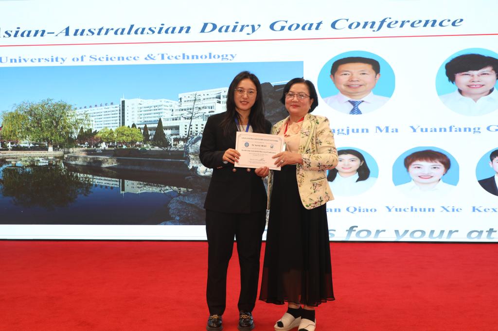 2024年11月20日到24日,由西北农林科技大学主办的“第六届亚澳奶山羊大会”于陕西杨凌召开。来自全球10个国家的170多位专家学者、企业行业代表参会,共同探讨奶山羊产业的最新研究成果和未来发展方向。本届论坛的主题是“奶山羊绿色养殖与优质羊奶生产”。best365动物科技学院青年教师邵钺馨博士参加论坛并作“Function and regulation mechanism of CTCF on lactoferrin synthesis in dairy goat”大会报告。