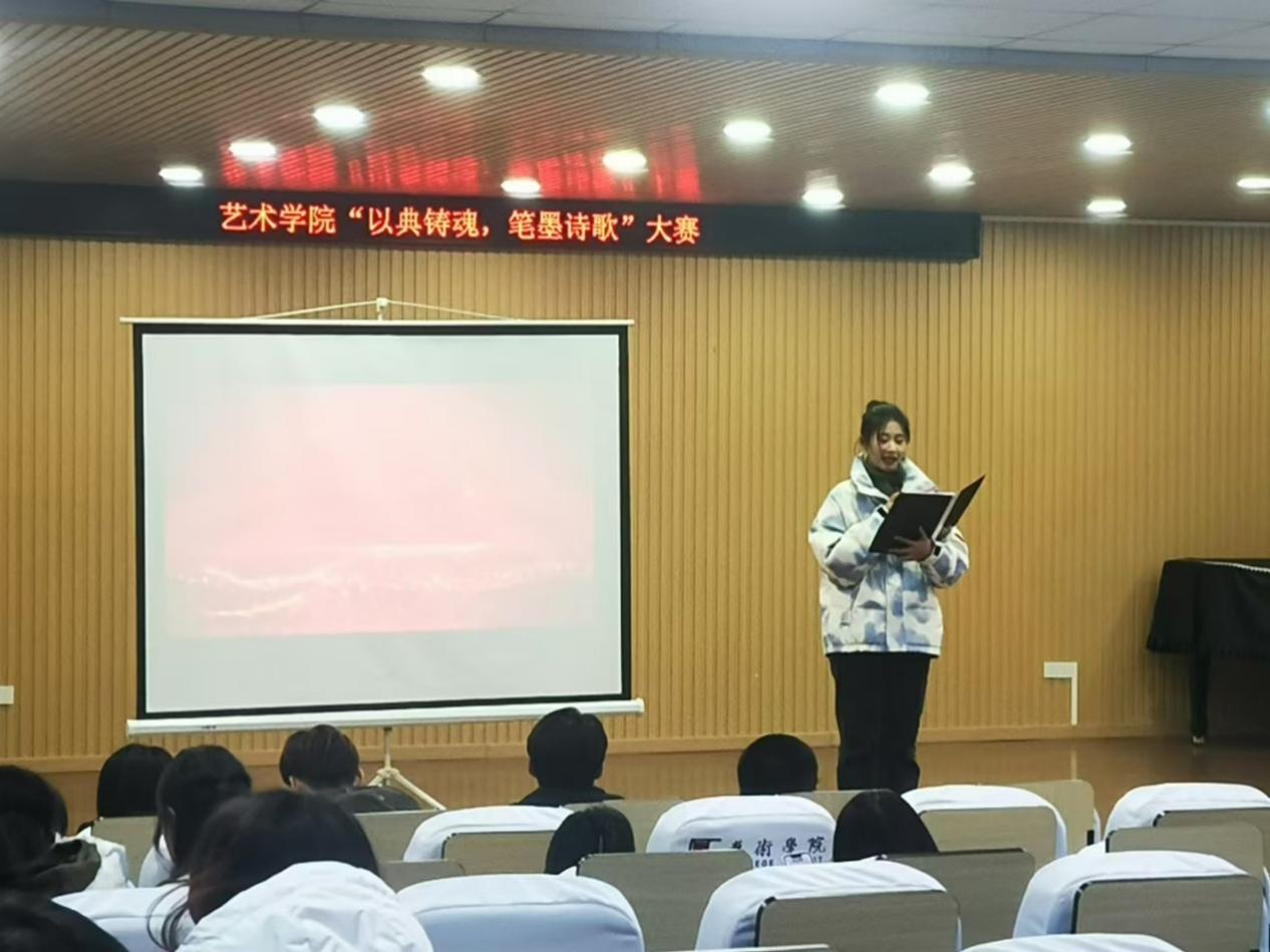 2024年11月28日,为营造书香校园文化氛围,引导同学们养成良好的阅读、诵读习惯,传承和弘扬中华民族优秀传统文化,激发同学们对中华文化的学习和热爱,艺术学院在艺术楼众诚报告厅举办了“以典铸魂,笔墨诗歌” 主题诗歌朗诵大赛。