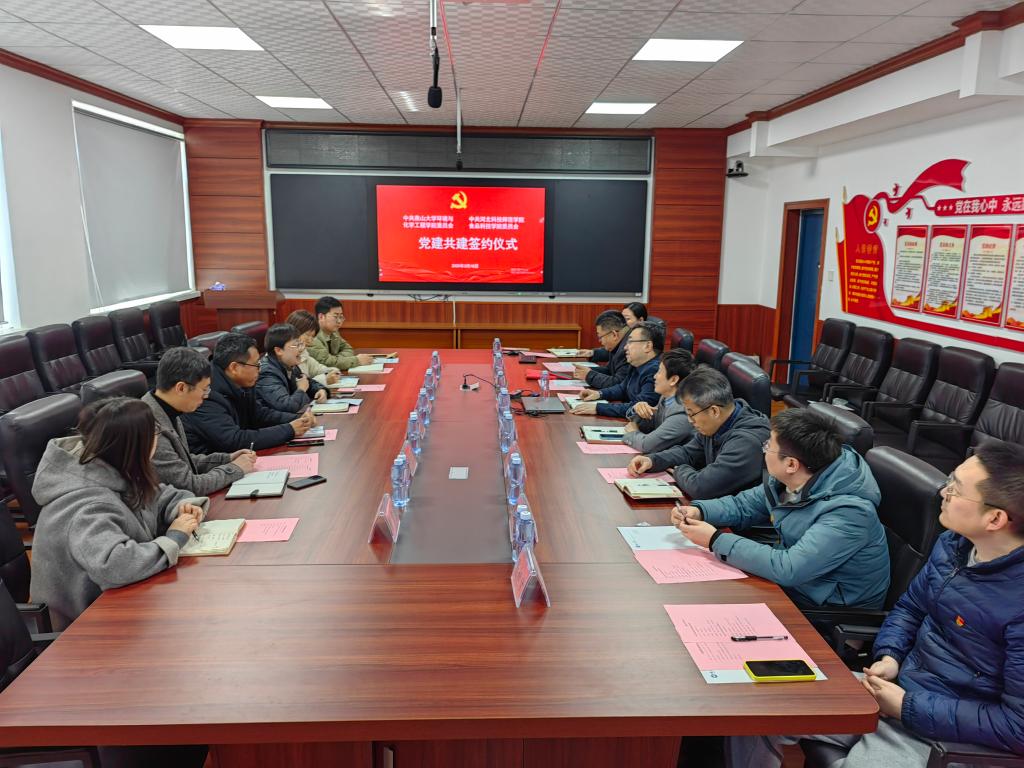 2025年3月18日,为深化校际合作,推动党建与业务深度融合,食品科技学院党委与燕山大学环境与化学工程学院党委在燕山大学世纪楼618会议室举行党建共建签约仪式。燕山大学环境与化学工程学院领导班子、食品科技学院领导班子以及党支部书记代表参加仪式。