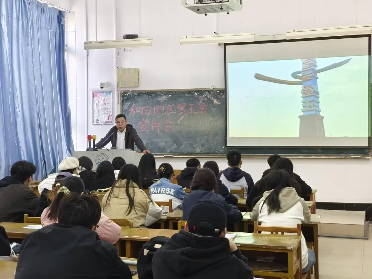 2025年3月25日,为深化校地人才合作,助力边疆教育事业发展,数信学院在秦皇岛校区逸夫楼A108成功举办新疆和田地区墨玉县2025年教师招聘宣讲会。现场吸引近百名毕业生踊跃参与,5名学子与用人单位达成初步就业意向。