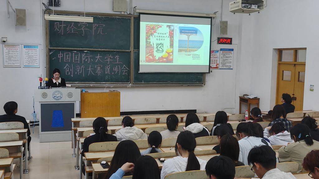 2025年5月23日,为助力学生深入了解中国国际大学生创新大赛,激发学生创新活力,提升参赛竞争力,财经学院于A105、A107分别举办“中国国际大学生创新大赛”说明会,特邀左亿薇和汤庆伟担任主讲人。