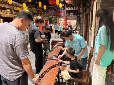 互动时刻,实践队员热情邀请围拢过来的小朋友们体验弹奏,手把手教他们拨动琴弦奏响《小星星》。当稚嫩的旋律响起,孩子们脸上绽放的笑容,恰似传统文化种子悄然萌发的嫩芽。“长城的故事藏在砖缝里,音乐的故事藏在琴弦上,”一位参与体验的家长感慨,“这样的结合太有意义了。”