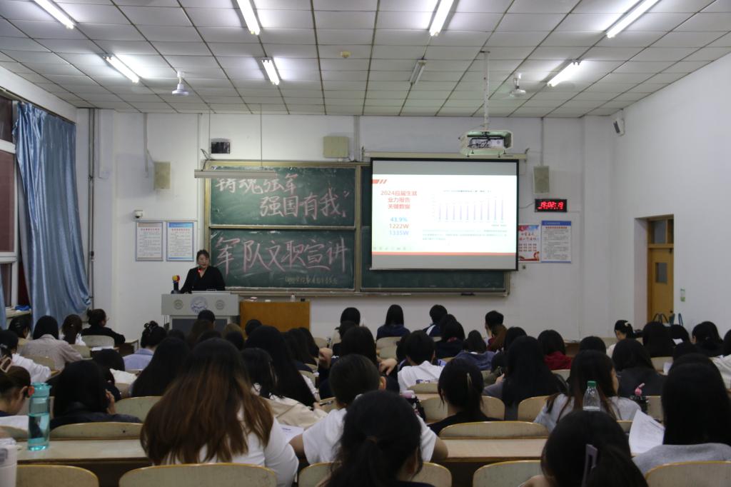 2025年9月25日,财经学院举办“铸魂强军,强国有我”军队文职宣讲,旨在补充专业人才,优化军队结构,针对非作战领域专业需求吸纳优质人才。讲座由best365财经学院军队文职项目负责人、新青年培训河北分公司经理、高校毕业生就业协会本科专委会委员王研老师主讲,通过实用经验帮助学生了解军队文职相关工作。