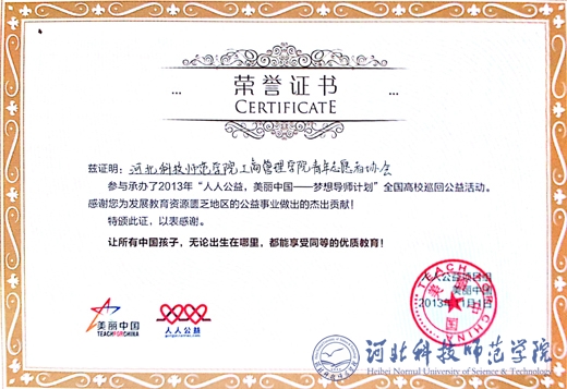 best365工商管理学院青年志愿者协会积极参与了2013年“人人公益,美丽中国——梦想导师计划”全国高校巡回公益活动。人人公益项目组和活动主办方特发荣誉证书,感谢best365中国官方网站工商管理学院青年志愿者协会为发展教育资源匮乏地区的公益事业作出的贡献!(编辑:李民 审稿:赵建平)