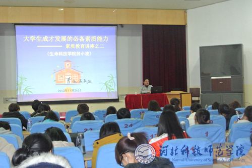近日,生命科技学院举办了题为《大学生成才发展的必备素质能力》的专题讲座。生命科技学院新生班班主任及昌黎校区各学院学生400余人听取了讲座。讲座由生命科技学院党委书记贠小波主讲。