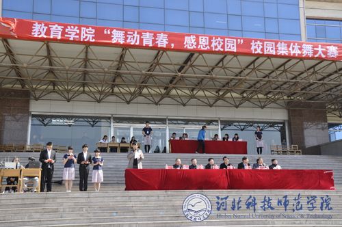为了充分展示大学生团结创新、锐意进取、蓬勃向上的精神风貌, 4月18日下午, 教育学院在开发区校区举行以“舞动青春,感恩校园”为主题的集体舞大赛。校党委学工部部长、学生处处长冯瑞银,开发区校区办主任王旭民,学生处副处长徐树君,教育学院党委书记唐代清、院长崔万秋、副院长白继海以及全体教师参加了此次活动。教育学院副书记、副院长郝东为本次活动致辞。