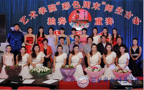 2012年9月21日,艺术学院“彩色周末”郑博师生古筝独奏重奏音乐会在开发区校区学术报告厅举行。教务处处长武士勋,校工会主席毕丹霞,教学实践监控科科长刘欣,艺术学党委书记王旭民,院院长张海燕,副院长程学勇,副书记、副院长王志安等领导和师生们一起聆听了这场音乐会。