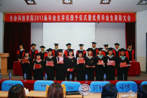 2011年6月17日上午,生命科技学院在昌黎校区学术报告厅隆重举行2011届毕业生学位授予仪式暨优秀毕业生表彰大会。学院领导班子成员和学院学位委员会委员、毕业班班主任、347名本科生和部分在校生代表参加了典礼。典礼由生命科技学院副书记、副院长孟庆东主持。