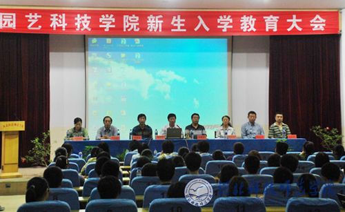 2011年9月13日晚上,园艺科技学院2011级新生入学教育大会在昌黎校区学术报告厅举行。党委书记杨俊明,院长项殿芳,党委副书记、副院长李佩忠,副院长齐永顺,副院长杨晓玲,相关教师及336名新生参加了教育大会。会议由李佩忠主持。