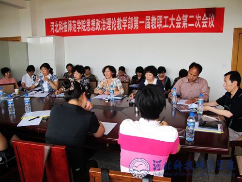 2011年6月2日,思想政治理论教学部第一届教职工大会第二次会议在秦皇岛校区召开。思想政治理论教学部全体教职工参加了会议,会议由思想政治理论教学部工会主席李一主持。
