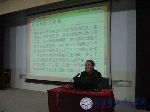 此次讲座是学校团委和思想政治理论教学部共同举办的《青春大讲堂暨时政论坛》系列讲座之二。
