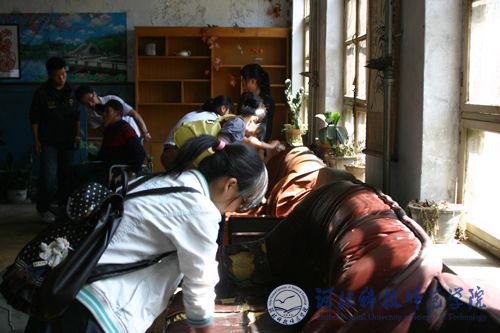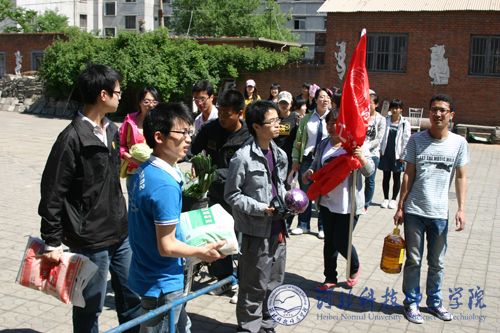 党旗辉映,敬老先行,志愿服务,争先创优。2011年5月15日下午,工商管理学院学生党支部党员及入党积极分子代表组成志愿者服务队来到秦皇岛老来福敬老院,为老人们带去了米、面、油等慰问品;积极主动的与老人们聊天,帮助他们打扫卫生,整理屋子;并精心准备了适合老人们欣赏的节目,受到了福利院领导和老人们的高度赞扬。