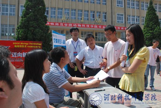 2010年6月1日至2日,动物科技学院在昌黎校区举办2010届毕业生就业洽谈会。北京、天津、辽宁、山东、河北等省市的30余家用人单位来到招聘会现场招聘。学校党委常委刘泽义、副校长孟令臣、昌黎校区办公室主任李彦生来到招聘会现场进行指导。吴建华、宋金昌、杨宗泽、王玉芬等动物科技学院领导与招生就业处相关教师及动物科技学院2010届全体毕业生和2011届将进行生产实习的大三学生共400余人到招聘会现场与用人单位进行洽谈。