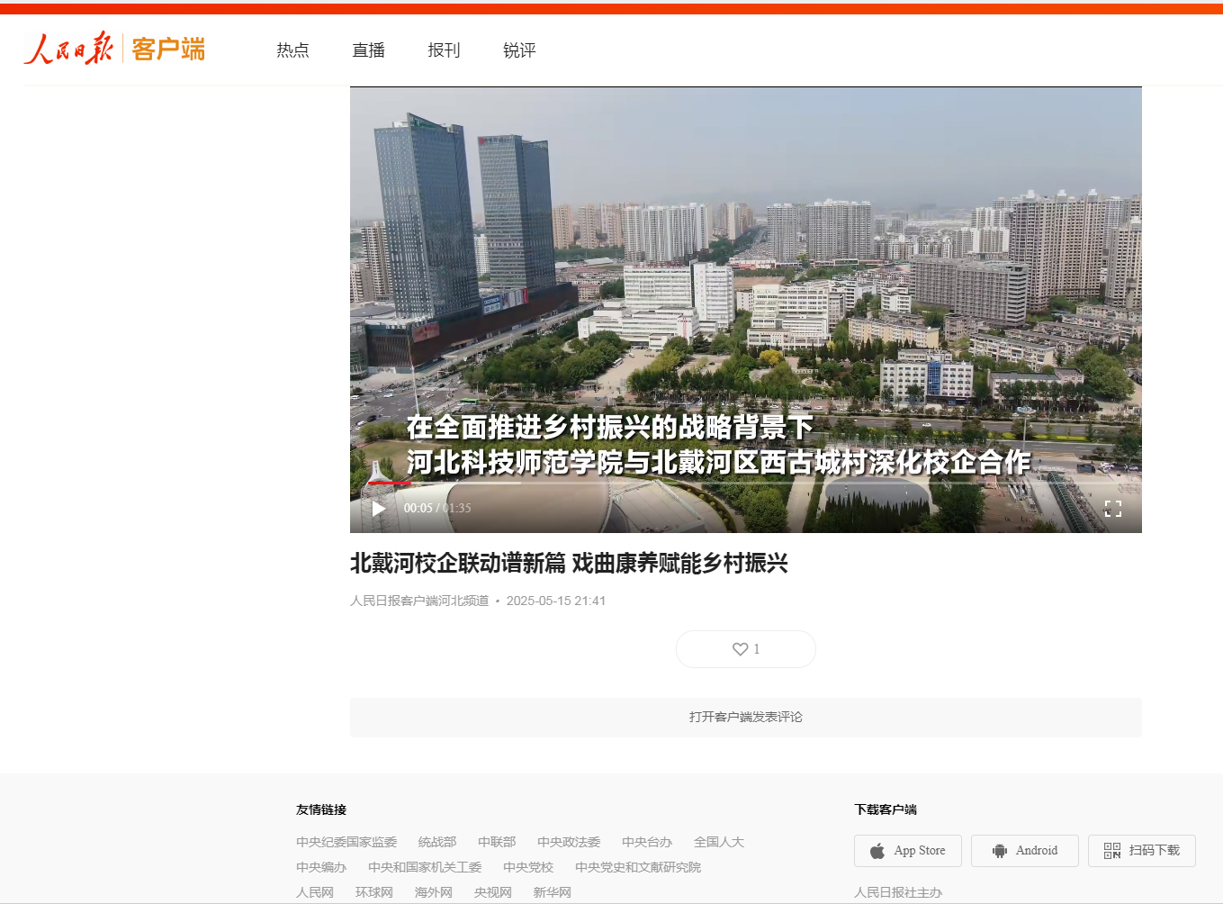 2025年5月15日《人民日报》客户端河北频道播出best365深化校地合作事迹(一)