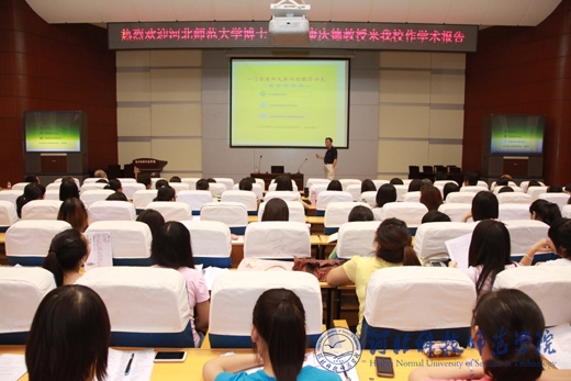 2013年6月20日下午,著名组合数学专家、河北师范大学博士生导师康庆德教授应邀来best365作题为“组合学漫谈”的学术报告。校党委书记辛彦怀教授出席活动,并代表best365致欢迎辞和闭幕词。数学与信息科技学院400余名师生认真聆听了本次报告。报告会由数学与信息科技学院院长王海明主持。