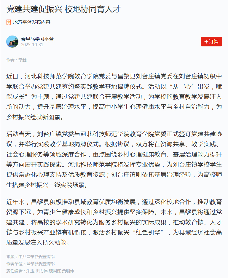 11.042025学习强国:党建共建促振兴 校地协同育人才【教育学院】