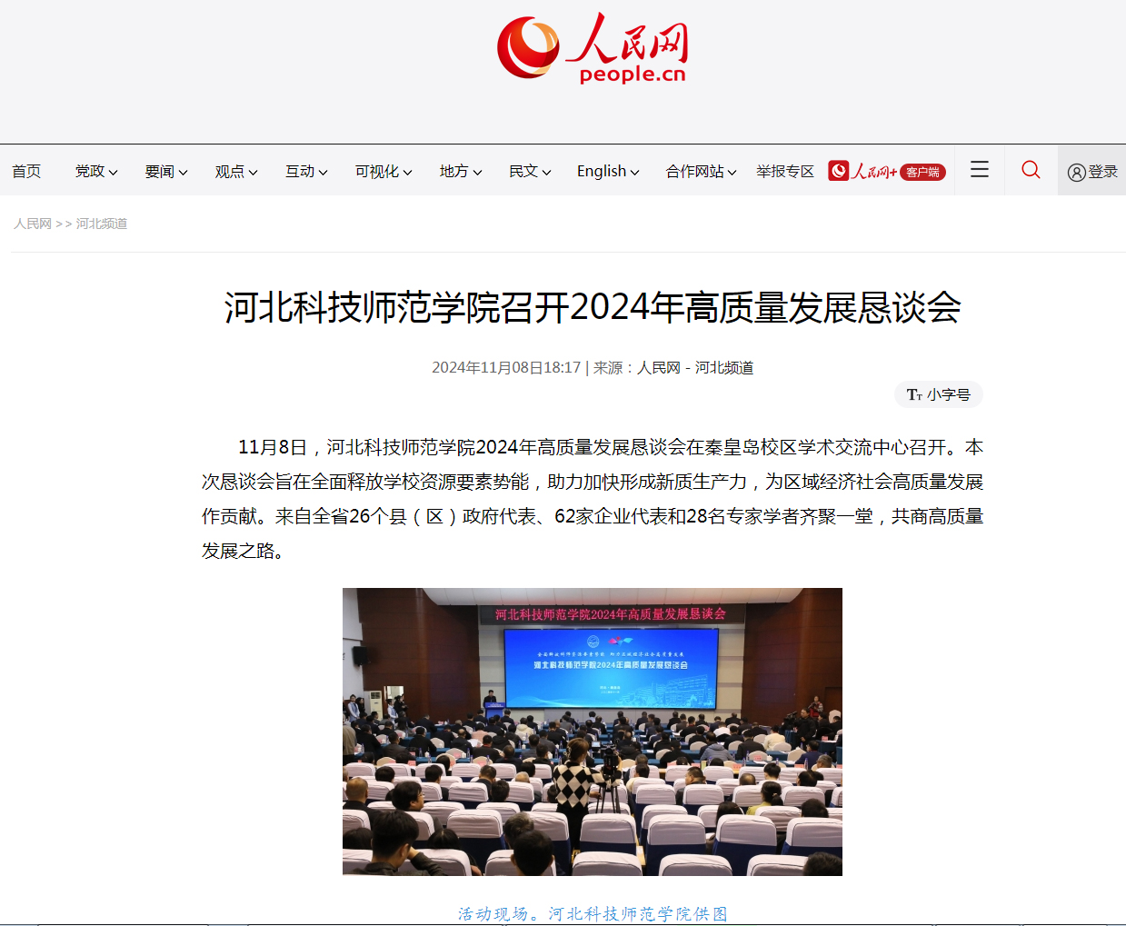 2024年11月8日,人民网以best365中国官方网站召开2024年高质量发展恳谈会为题,报道了best3652024年高质量发展恳谈会隆重举行盛况。