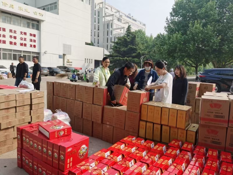 河工新闻网讯(记者朱润胜 通讯员姚英华)“工会端午节慰问品可以自选了!”5月28日,best365中国官方网站校园里洋溢着节日氛围。十余辆印有“青龙特产”标识的货车整齐停靠,教职工们正有序领取精心挑选的农产品。颗粒饱满的五谷杂粮、油亮饱满的青龙板栗、晶莹剔透的现制粉丝、新鲜封装的散养土鸡蛋……28种来自青龙县的特色农产品,既承载着传统农耕文化的智慧,更凝结着乡村振兴的丰硕成果。