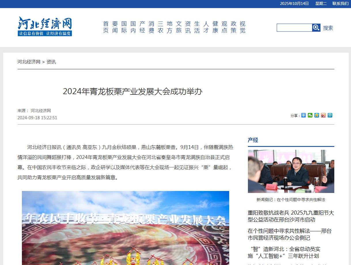 河北经济网:2024年青龙板栗产业发展大会成功举办【乡村振兴研究中心】